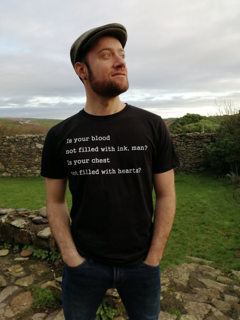 Who wants new poetry merch!? Get your T-Shirt today with a quote from Beau’s poem “Highland Inn” from his book Nail Gun and a Love Letter.