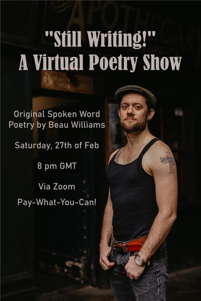 Let’s hang out on Saturday the 27th! I will be performing a set of original poetry and I want you to be there! It has been a long year but dangit, we’re “Still Writing!”Life is a bit hectic these days, so the fee for this event is Pay-What-You-Can. I want everyone to be able to make it to this show. It has been far too long since I’ve performed for your wonderful faces!